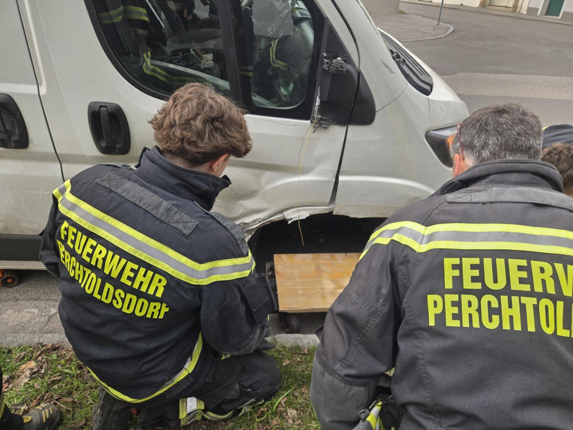 Um 10:39 Uhr wurde die Freiwillige Feuerwehr Perchtoldsdorf zu einer Bergung eines Transporters alarmiert. Dieser war aufgrund der glatten Fahrbahn von der Straße abgekommen und wurde von einem Baum