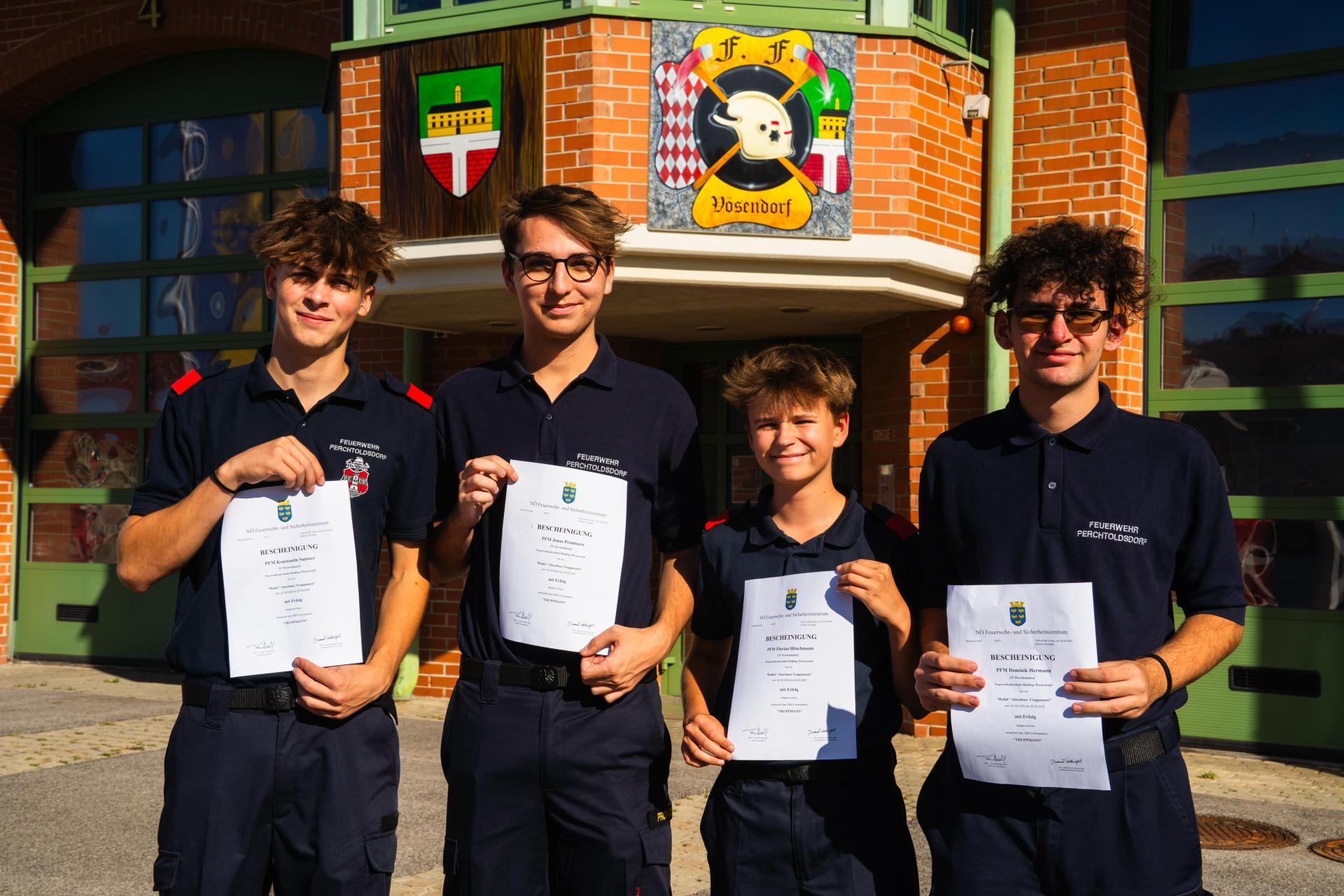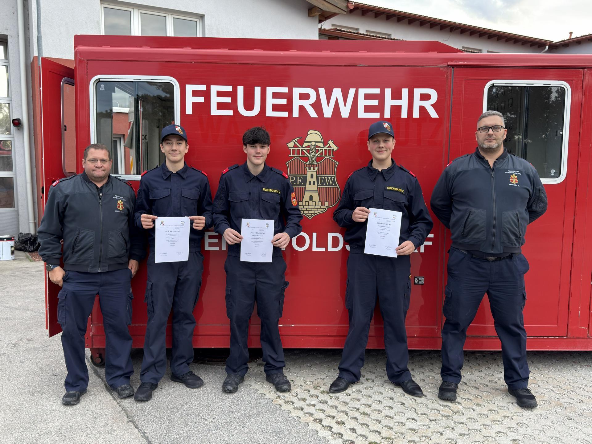 Drei Mitglieder der Freiwilligen Feuerwehr Perchtoldsdorf absolvierten im Oktober die Prüfung als Atemschutzgeräteträger positiv. Die Ausbildung startete bereits Anfang August und erfolgte in mehreren Teilen. Kamerad Bauer-Valek unterstützte die Jugendlichen bei ihrer Ausbildung. Wir gratulieren den drei neuen Atemschutzgeräteträger zur bestandenen Prüfung.