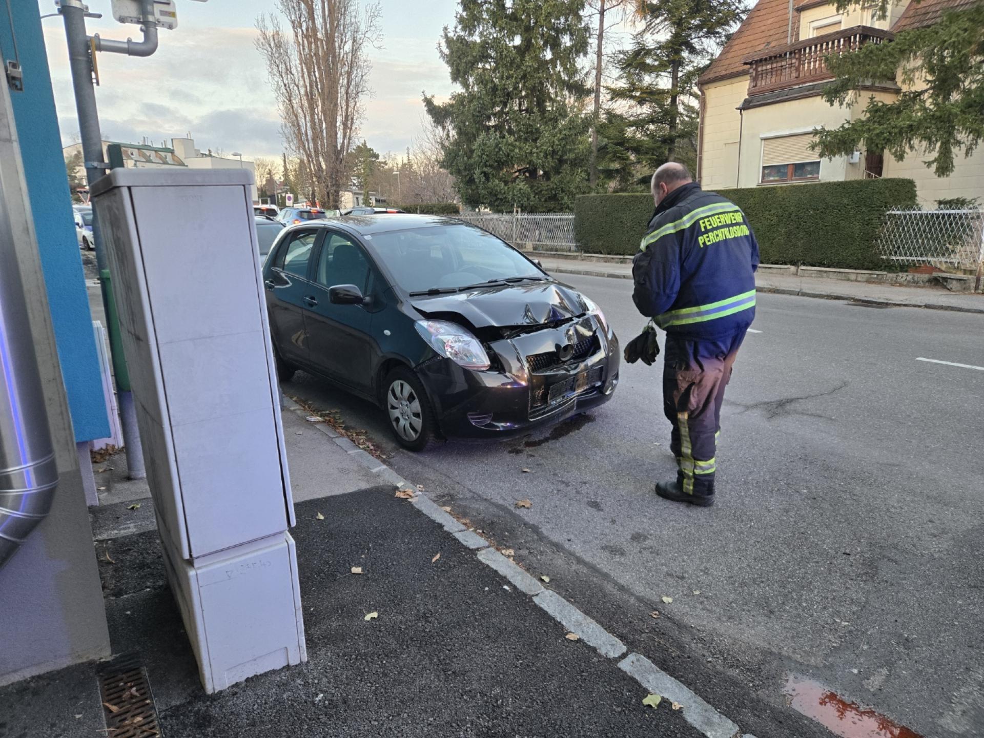 Während dem Brandeinsatz wurde die Freiwillige Feuerwehr Perchtoldsdorf zu einem Betriebsmittelaustritt alarmiert. Ein PKW kollidierte mit einer Hauswand und verlor dadurch Betriebsmittel. Beide Fahr